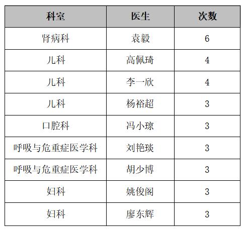 2025.11.10-11.16表扬医护排行榜 2025-11-18 08:16优质服务办公室 为了促进我院医患沟通和交流,积极改善门诊患者就医体验,我们对每日就诊者发送问候短信,诚恳征求建议。上周通过调查,我们收到了一些热心患者的建议,非常感谢他们对医院的信任和关心;同时也收到了很多患者的感谢和表扬,患者对258名医生、67名护士提名表扬,其中被提名表扬前九位的医护有医生表扬排行榜护士表扬排行榜